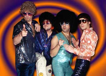 DISCO INFERNO is Pimp Daddy T. Love, Sonny D. Lite, Darius Aquarius, Rufus Z. Funkenstein, and Johnny Crowvolta. They are all a cast of professional entertainers from Perfect World Entertainment in Los Angeles, California. DISCO INFERNO was formed in 1995 after Sonny relocated from Southern California to the Cleveland area. Sonny was an original member of the world famous Boogie Knights, the band that started the disco band craze in 1992. Noticing that there was a serious need for a band that could bring some boogie to the Midwest, Sonny and former drummer Antonio "Diablo" Banderos enlisted the help of the bass player from Firehouse, Darius, porn star Johnny Crowvolta on percussion and backing vocals and the Reverend Russell J.Love on lead vocals. DISCO INFERNO was an instant success playing Cleveland venues such as The Basement, Shooters, Phantasm, Odeon and Fagans. Soon, everyone wanted to be like DISCO INFERNO. Many local area copycat disco bands began springing up like a bad case of herpes. DISCO INFERNO continues to stand above the wannabe disco acts by performing regularly at the Rock & Roll Hall of Fame and the Hard Rock Cafés. DISCO INFERNO was also featured with The Village People at the Cleveland National Rib Cook-off and annually headlines the Twilight at the Zoo benefit. Then